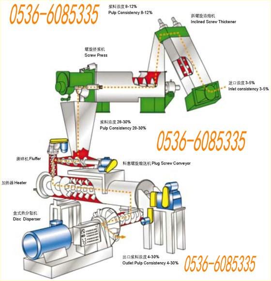 該系統(tǒng)適用于以廢紙為原料的各種漿料處理,可以有效地對廢紙漿料中的膠粘物、油脂、石蠟或油墨粒子等雜物進行分散處理,以改進紙張質(zhì)量,提高紙張性能。目前該系統(tǒng)多用于脫墨制漿線,在處理白色廢紙﹙ ONP 、 MOW OMG ﹚生產(chǎn)高質(zhì)量、高白度的紙張時,盤式熱分散系統(tǒng)設(shè)置在流程中部,洗滌之前,可有效分離無壓印刷油墨,并將油墨及熱熔性雜質(zhì)分散成細小顆粒,以利于在流程后部的浮選和洗工序中去除。