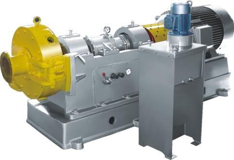 ZNM系列中濃磨漿機(jī)主要由喂料系統(tǒng)、磨漿系統(tǒng)、電機(jī)傳動系統(tǒng)組成,喂料系統(tǒng)由變速減速機(jī)、喂料螺旋組成。磨漿系統(tǒng)主要磨室、轉(zhuǎn)子、定子及調(diào)整移動裝置組成。